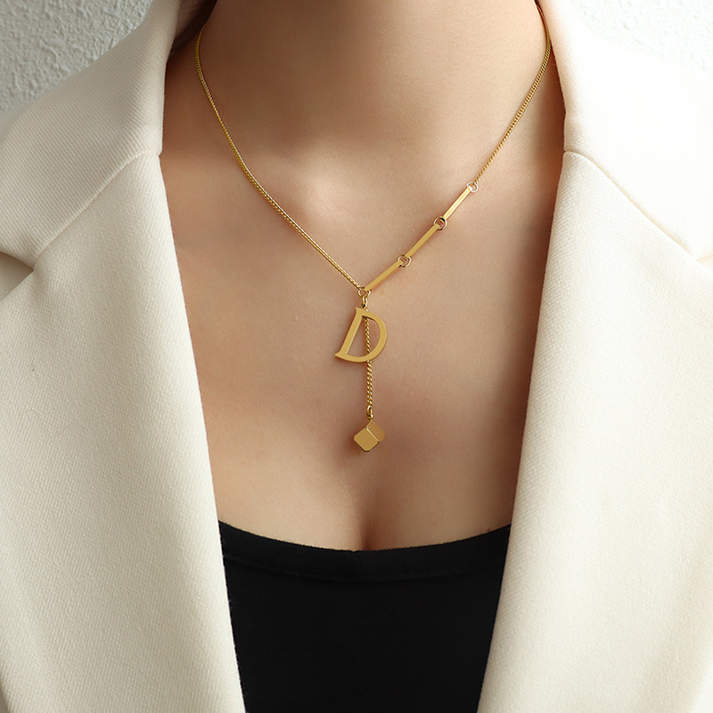 Letter D With Brick Shape Pendant Asymmetric Necklace