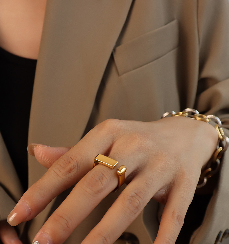 OT Buckle Leather Cord Gold Chain Necklace & Bracelet Set