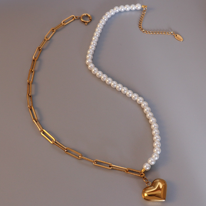 Pearls Splicing Skinny Chain With Hollow Heart Pendant Necklace