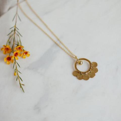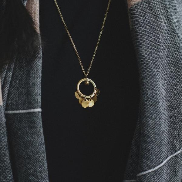 • Glam up with the_Brass Medallion Necklace._Handcrafted by women artisans in Nairobi, Kenya, this simple yet statement necklace has equal parts sophistication and global appeal._Make this your everyday piece, or dress up a printed outfit with a few medallions.