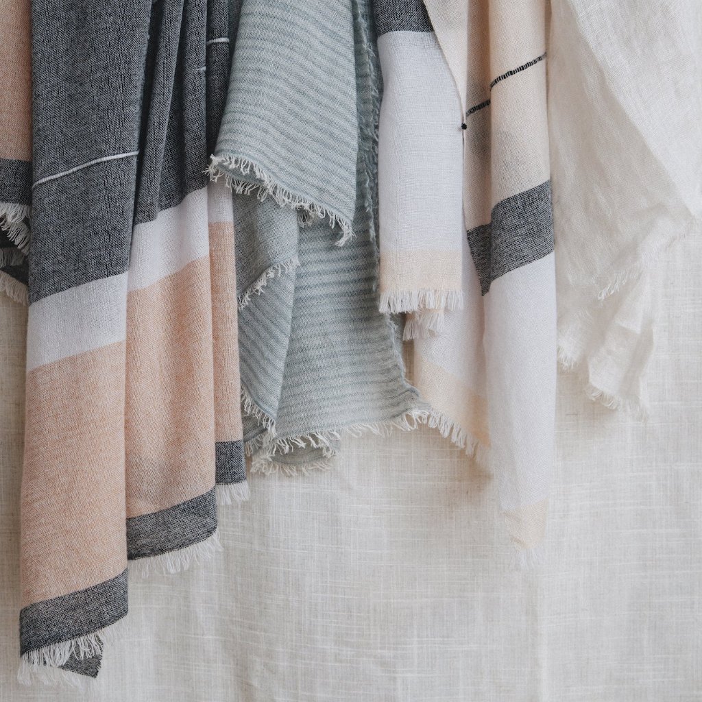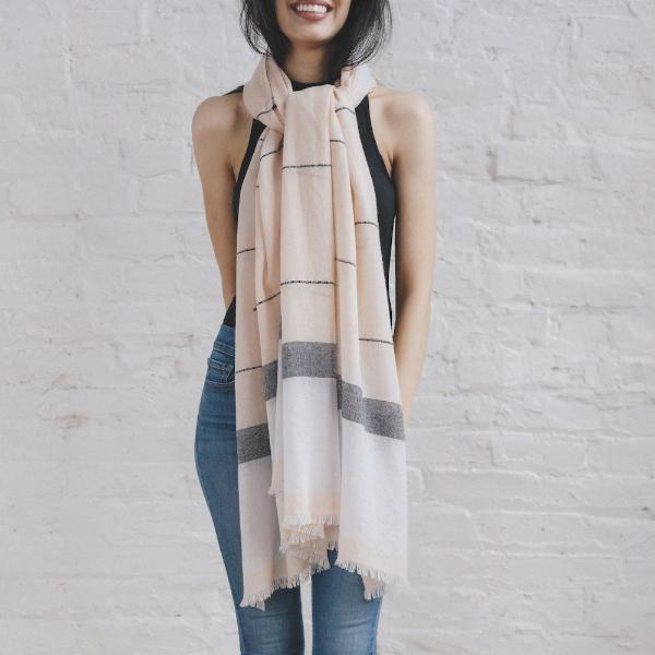 • The softest winter scarf is right here. Handwoven with 100% Merino wool by women artisans in Nepal, every purchase continues sustainable employment and community development. Choose from Blush or Grey, or treat yourself to both.