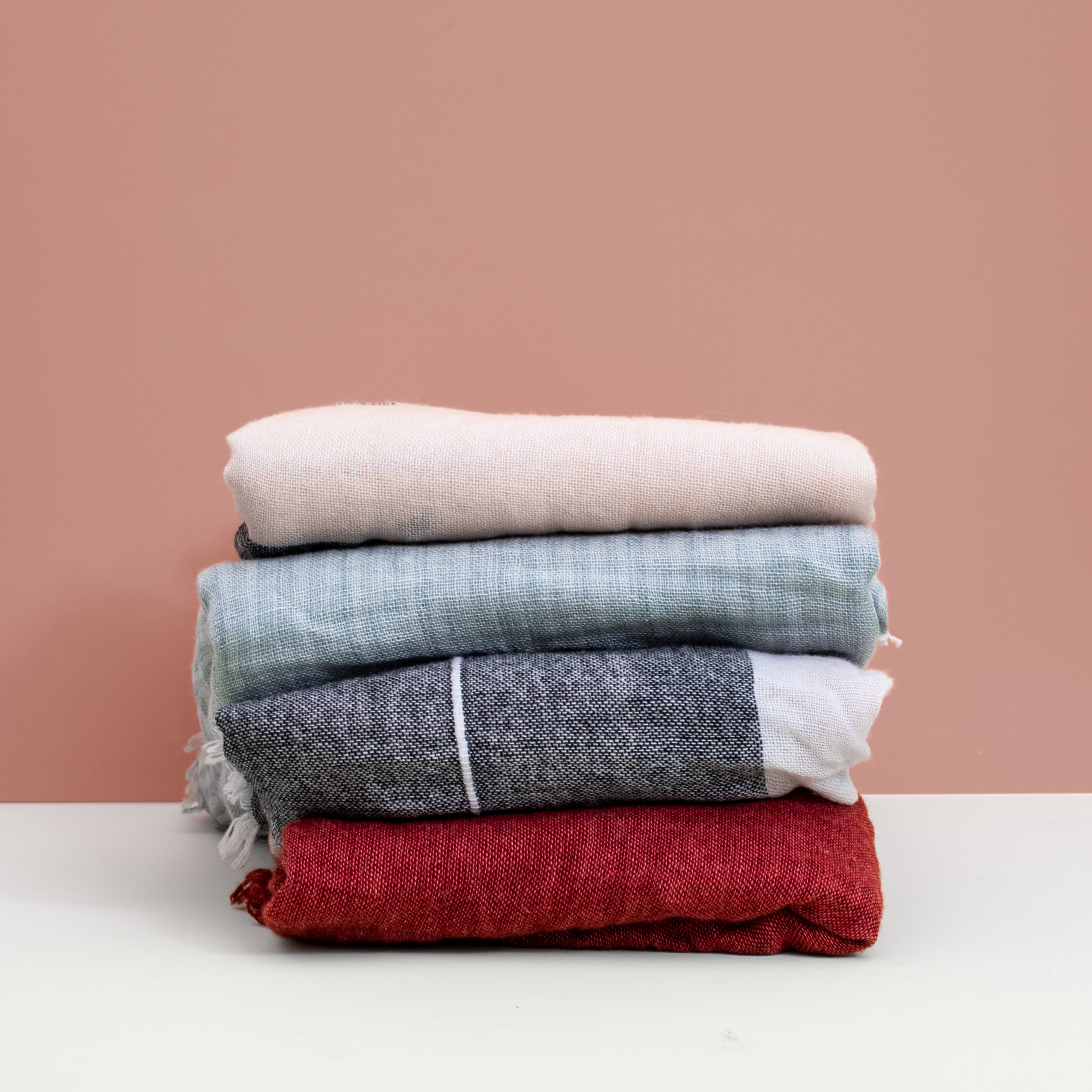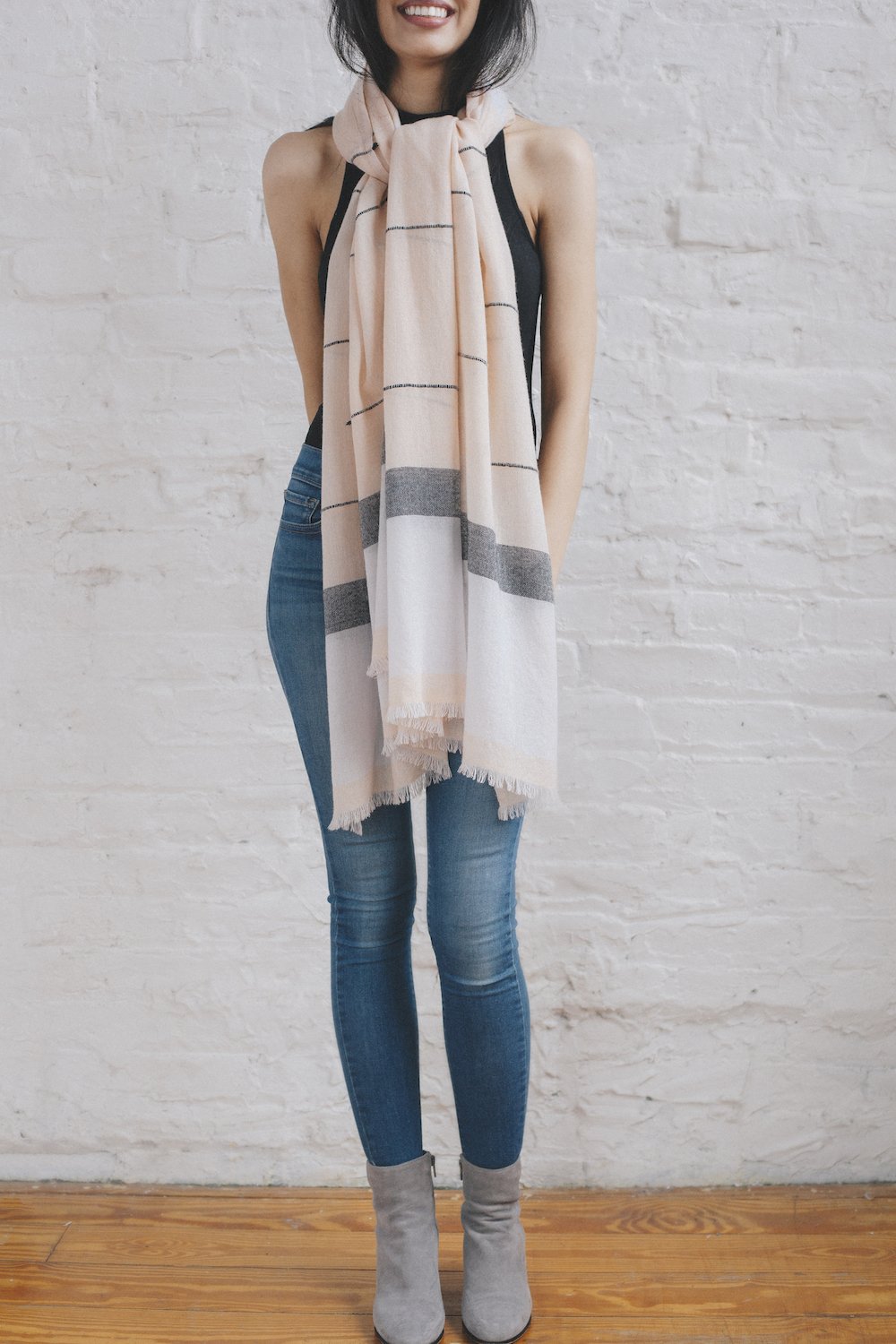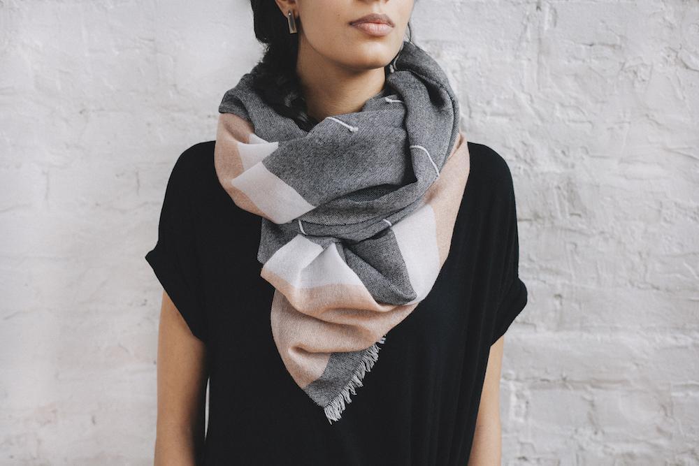 • The softest winter scarf is right here. Handwoven with 100% Merino wool by women artisans in Nepal, every purchase continues sustainable employment and community development. Choose from Blush or Grey, or treat yourself to both.