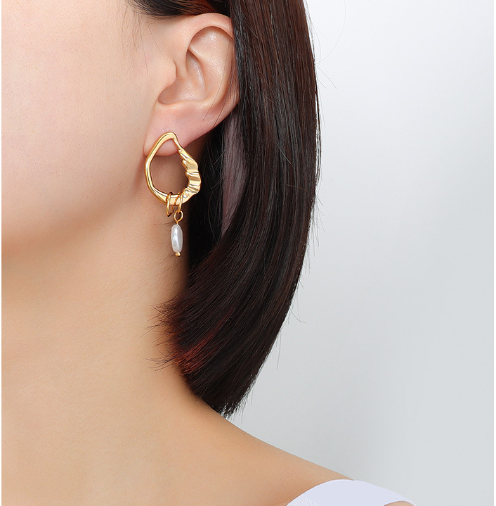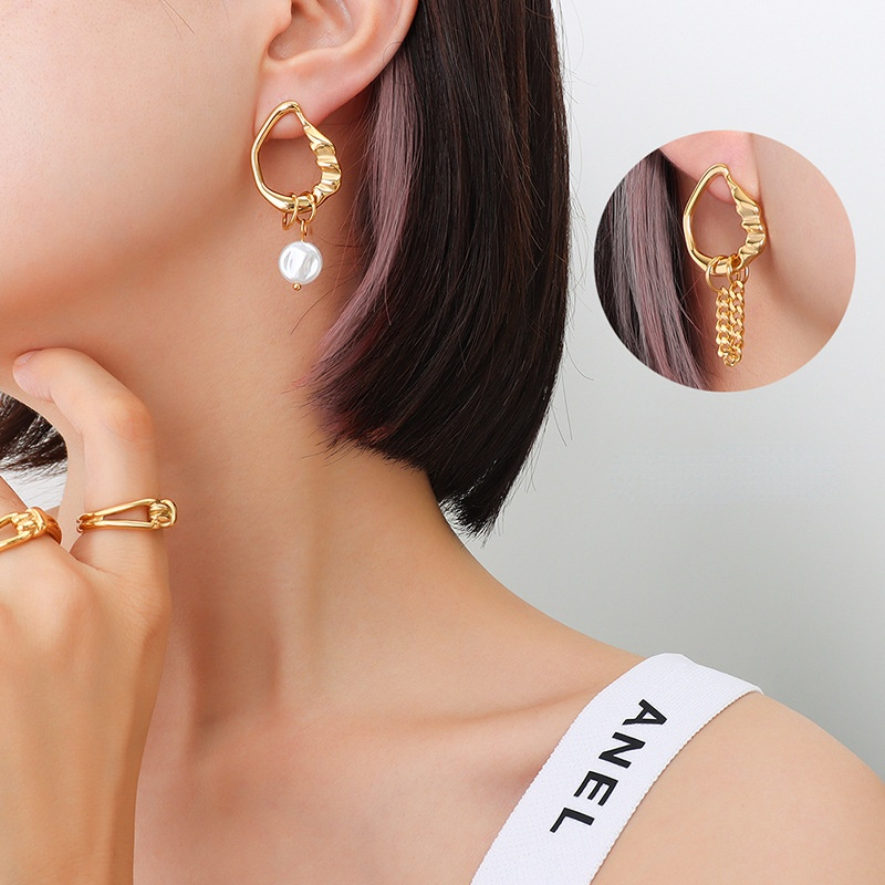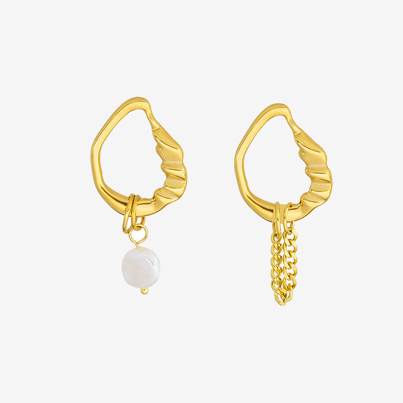 Asymmetrical design really makes the pair stand out! Pearl is dainty and gentle, while the chain gives a modern classy fashion, so there goes a perfect match up! You can also wear them as single ear earing as well!