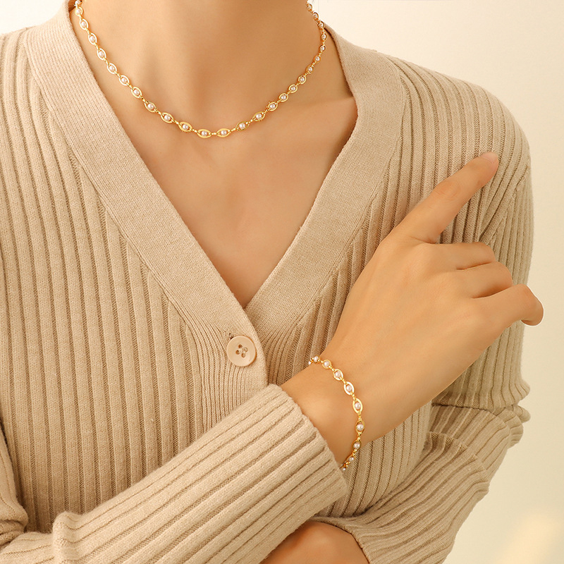 Baroque Style Dainty Pearl Necklace & Bracelet Set