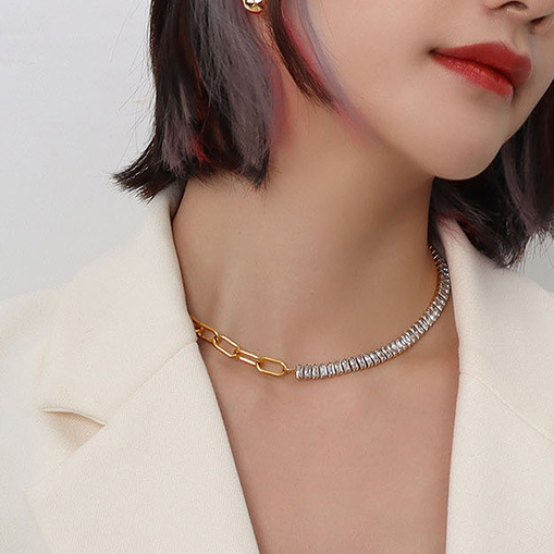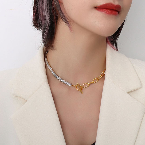 A bold statement maker, the asymmetric splicing looks classy with a unique taste. OT buckle design makes it quite easy to put on and take off. Spice up your daily outfit!