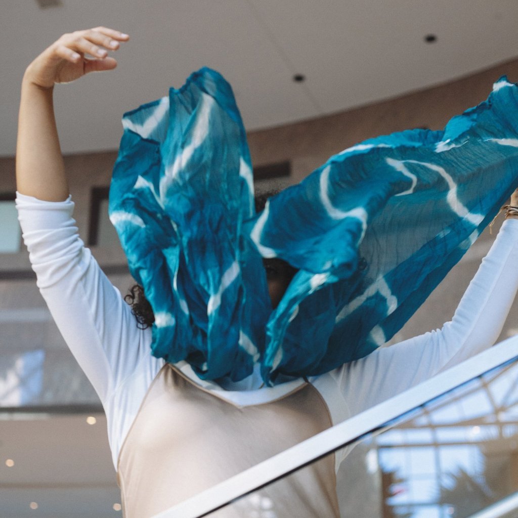 • This beautifully_bold and silky_soft scarf is_rich with texture and soul. This_Teal Dyed Silk Scarf is made from the softest Cambodian silk and crafted by master artisans. Available in three luxurious hues, this sea-green, turquoise and peacock lightweight scarf, can be wrapped around your neck, draped over your shoulders, or knotted around your head as a headband to complement your look.